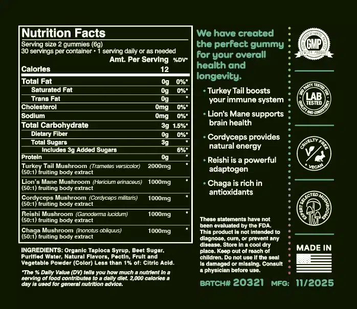 We collaborated with industry professionals to develop the best mushroom gummies out there! Elevate Your Lifestyle! Our gummies are designed to complement each other well with wonderful synergy to improve your overall well being…mind, body and spirit!