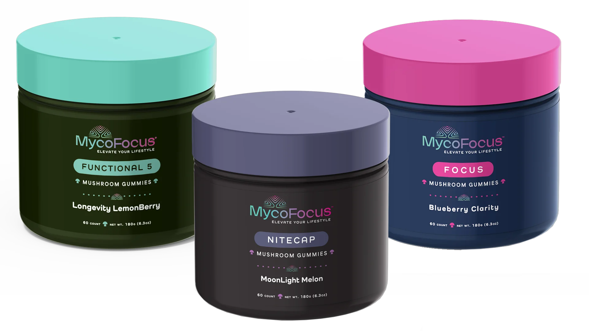 It’s here!! The 3 pack MycoBundle! Now you can save on all the gummies you love with this amazing bundle deal! Our gummies are designed to work extremely well together! Morning, afternoon and night, we have it all! This bundle pack is perfect to improve your overall wellbeing… brain health, heart health, gut health, improved sleep and mood, everything you need to Elevate Your Lifestyle in this fantastic bundle deal!!